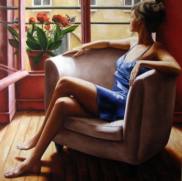 PORTRAIT EN BLEU - HST - 46 x 55 cm